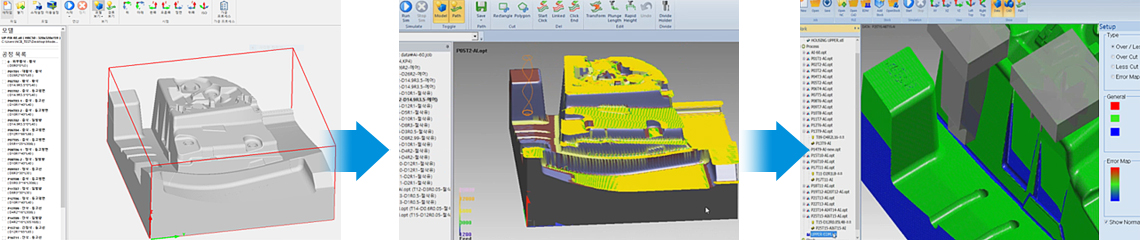 2단계 - 시뮬레이션 및 최적화 편집되어 NC 가공이 이루어집니다.