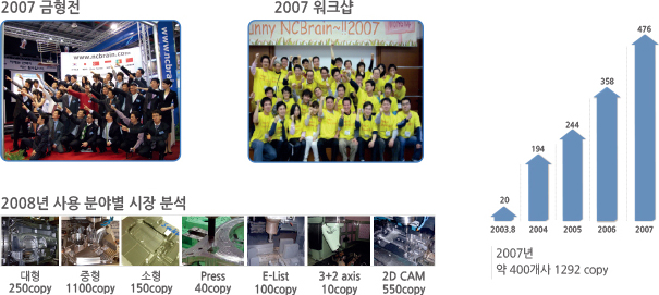 2003년 NCBrain 출시 한국 내 금형 NC가공의 표준으로 자리 매김