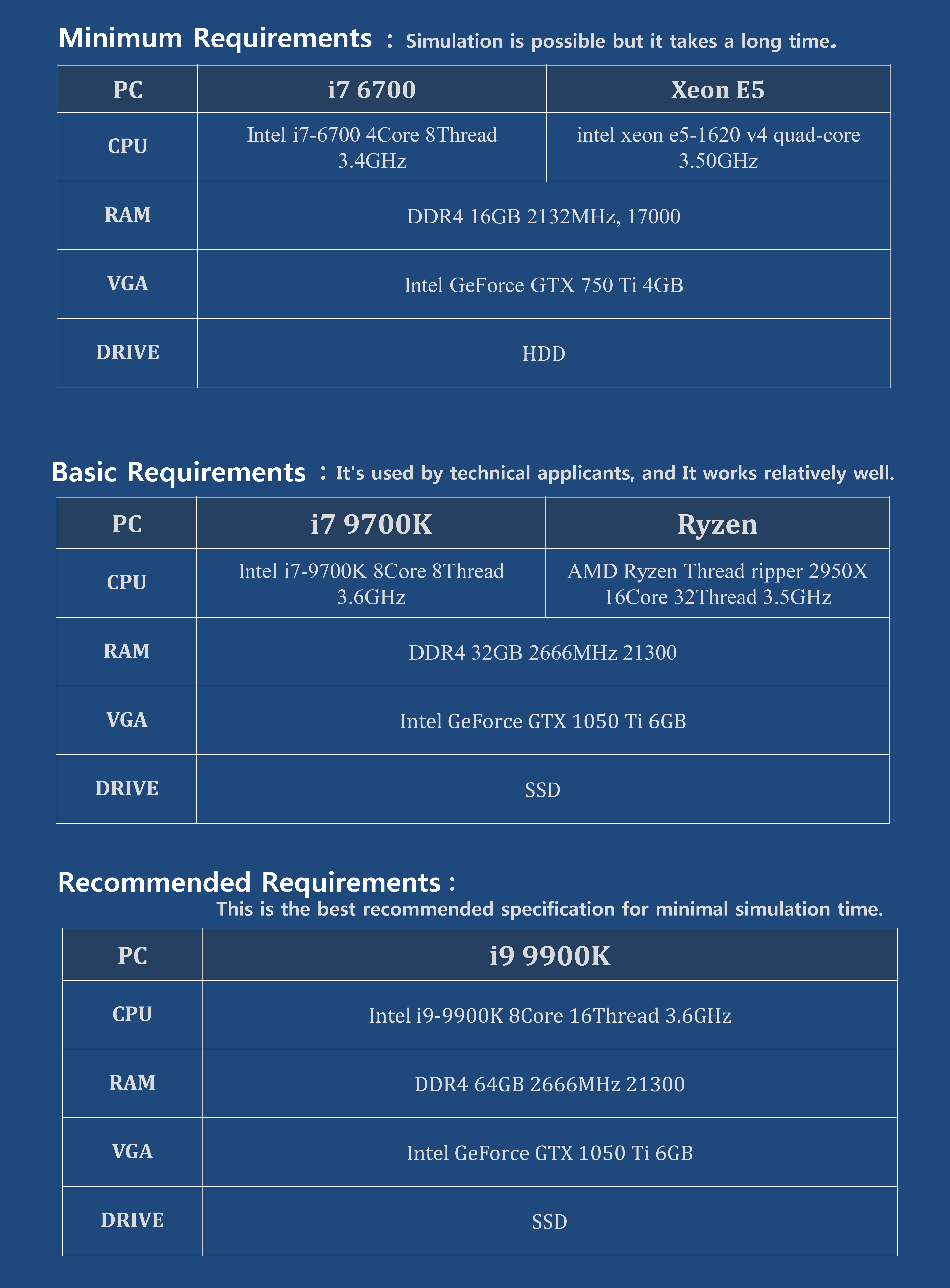 Therefore, we would like to introduce the PC system requirements and simulation time by model size for well use of this product.